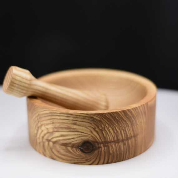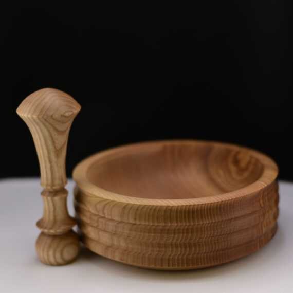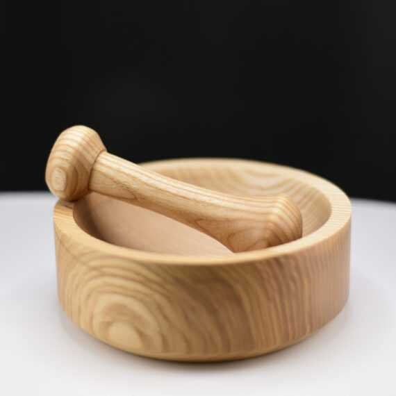 Mortier frêne olivier recyclé & pilon en buis – Artisanal