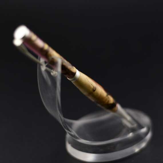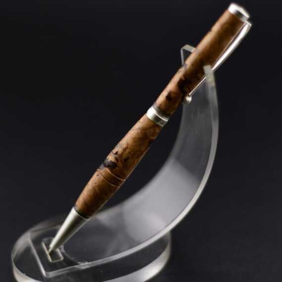 Stylo loupe de bouleau et résine rose – Argent brossé