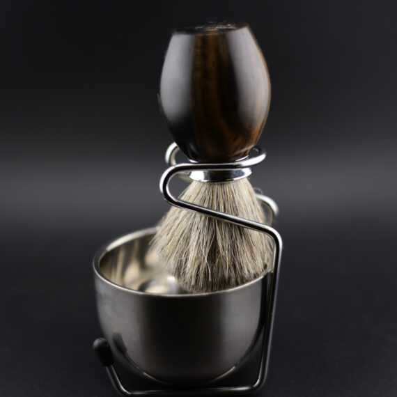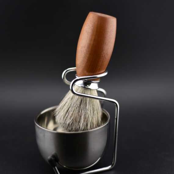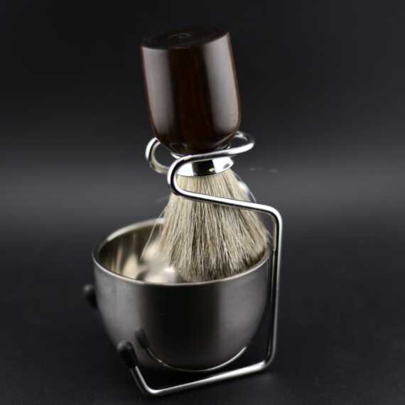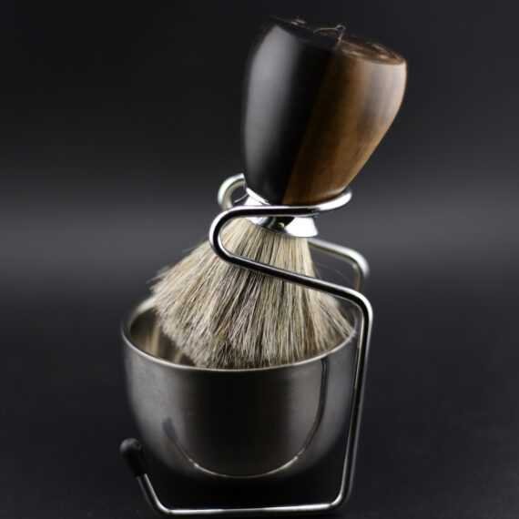 Blaireau de rasage en garapa – Poil véritable, acier inoxydable, bol et support
