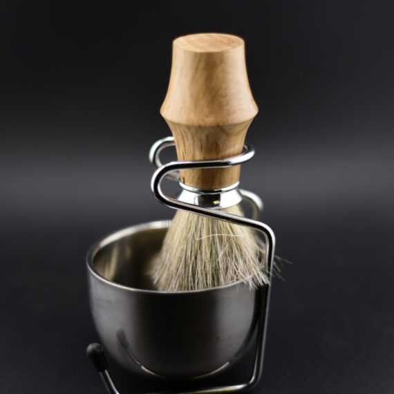 Blaireau de rasage loupe d’orme – Poil véritable premium, inox, bol et support