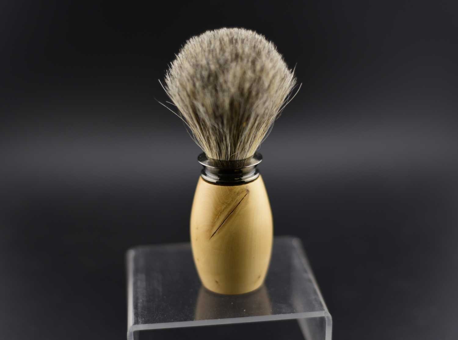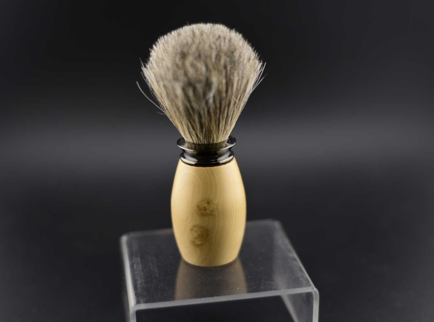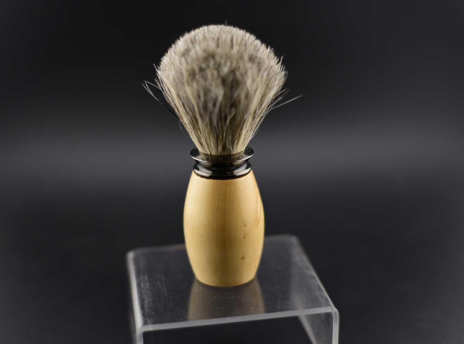 Ce blaireau de rasage est tourné à la main dans du buis, un bois clair et dense réputé pour sa finesse et sa douceur au toucher, offrant une prise en main parfaitement équilibrée pour un rasage traditionnel précis et confortable ; réalisé artisanalement dans l’atelier Seewood à partir de bois recyclé, il peut recevoir une gravure personnalisée pour créer un accessoire unique, idéal comme cadeau élégant pour homme ou pour enrichir un set de rasage haut de gamme.