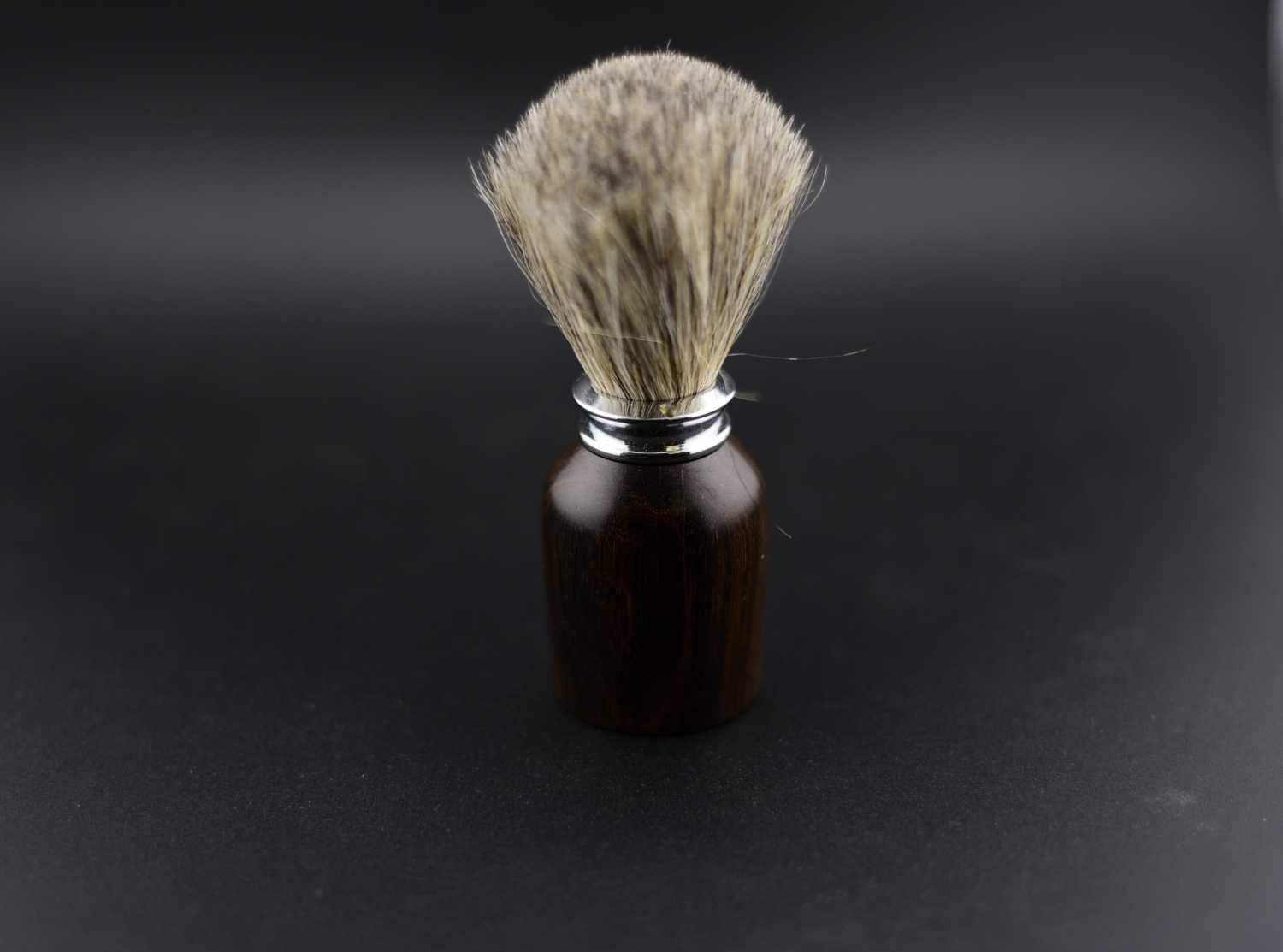 Ce blaireau de rasage est tourné à la main dans un magnifique gaïac du Mozambique, un bois rare et dense reconnu pour sa résistance naturelle et ses veines contrastées d’une grande beauté ; son manche parfaitement poli offre une ergonomie élégante et une sensation de qualité incomparable, tandis que la touffe généreuse permet une mousse abondante pour un rituel de rasage authentique et confortable. Fabriqué artisanalement dans l’atelier Seewood à partir de bois recyclé, il peut être personnalisé par une gravure pour devenir un cadeau unique et raffiné pour les amoureux du rasage traditionnel.