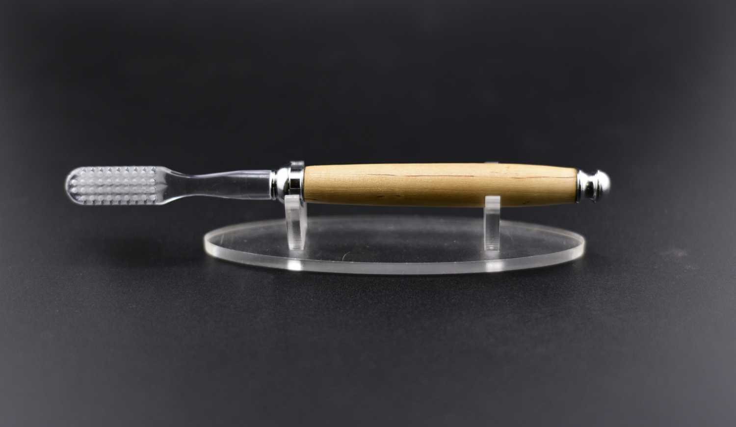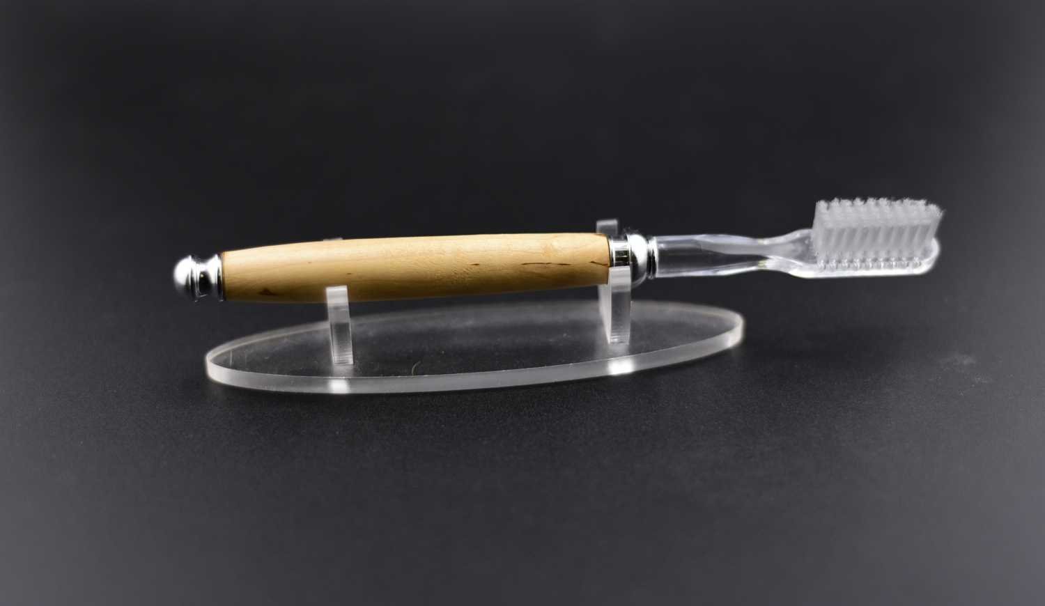 Alliez design raffiné et performance avec cette brosse à dents en bouleau Santa María, sélectionné pour ses veines délicates et ses nuances chaleureuses uniques. Les poils medium offrent un nettoyage précis et doux, respectant vos gencives tout en assurant une efficacité optimale. Chaque brosse est façonnée à la main, mettant en valeur la beauté naturelle du bois, et est livrée avec 3 recharges pour une utilisation prolongée. Une pièce artisanale élégante, durable et responsable, parfaite pour sublimer votre routine quotidienne ou offrir un cadeau sophistiqué et unique.