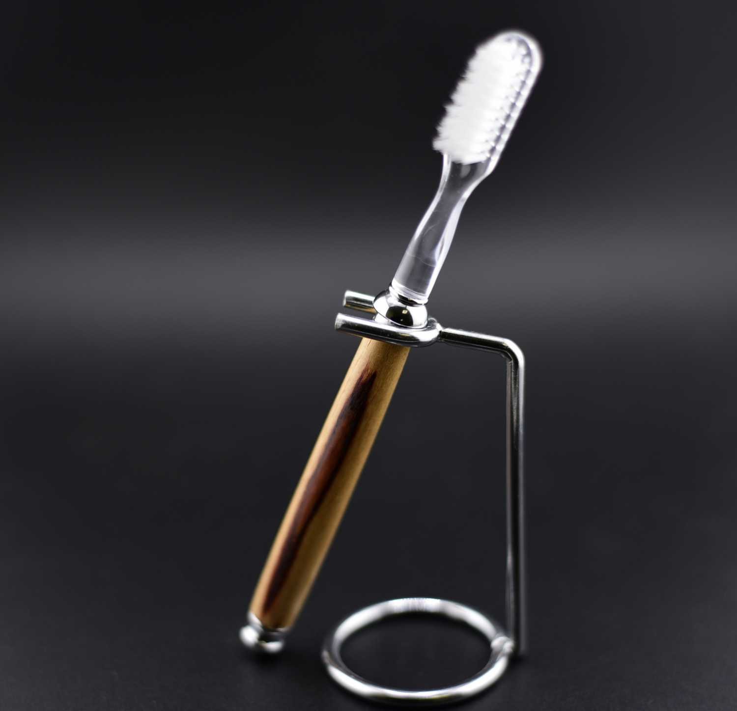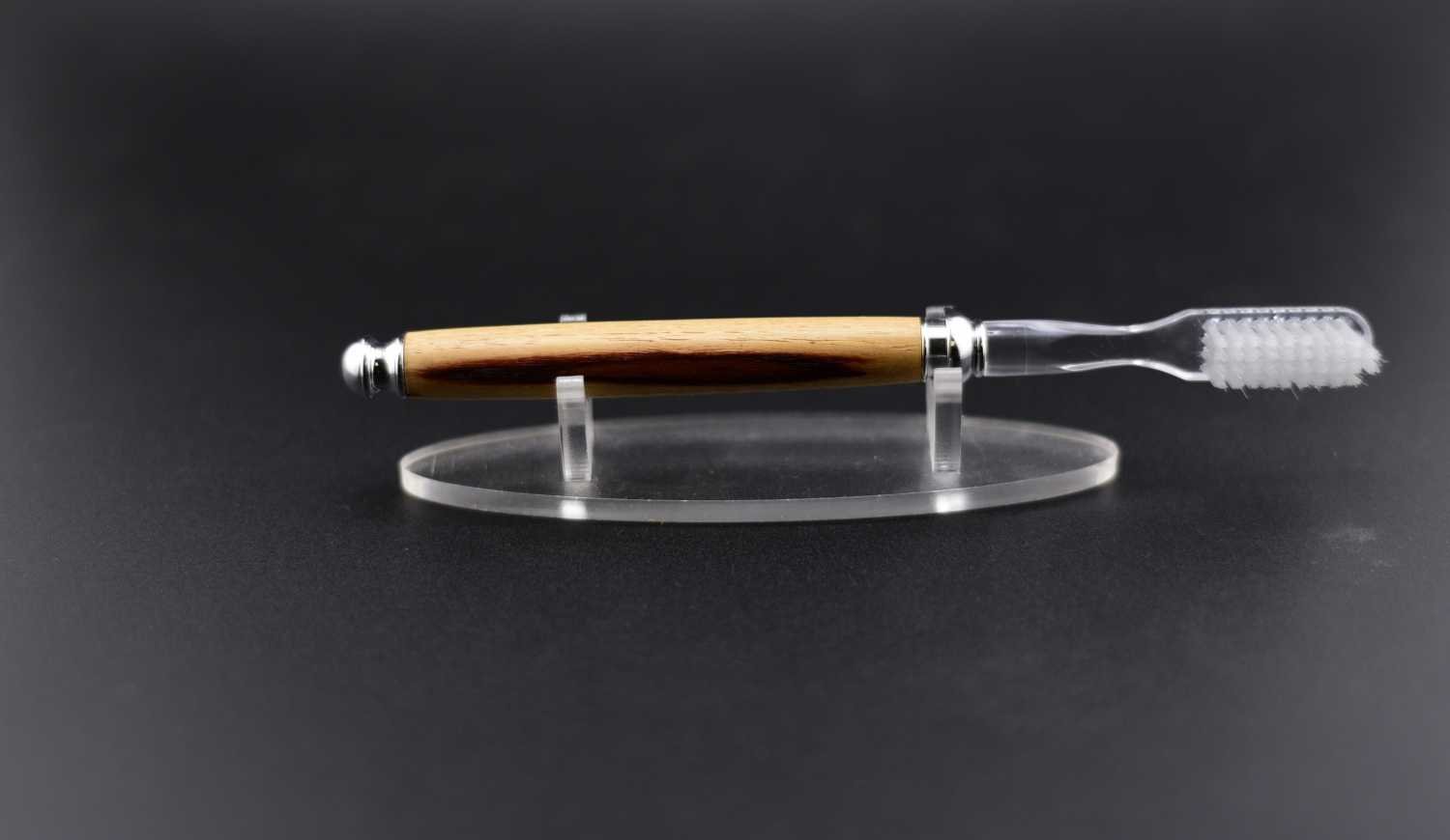 Apportez élégance et caractère à votre routine quotidienne avec cette brosse à dents en cocobolo, bois précieux aux teintes riches et chatoyantes, façonné à la main pour révéler ses veinures uniques. Les poils medium assurent un nettoyage efficace et délicat, respectant vos gencives tout en offrant un confort optimal. Livrée avec 3 recharges, cette brosse incarne l’alliance parfaite entre artisanat haut de gamme, durabilité et praticité, et constitue un objet raffiné, responsable et idéal à offrir ou à s’offrir pour sublimer le quotidien.