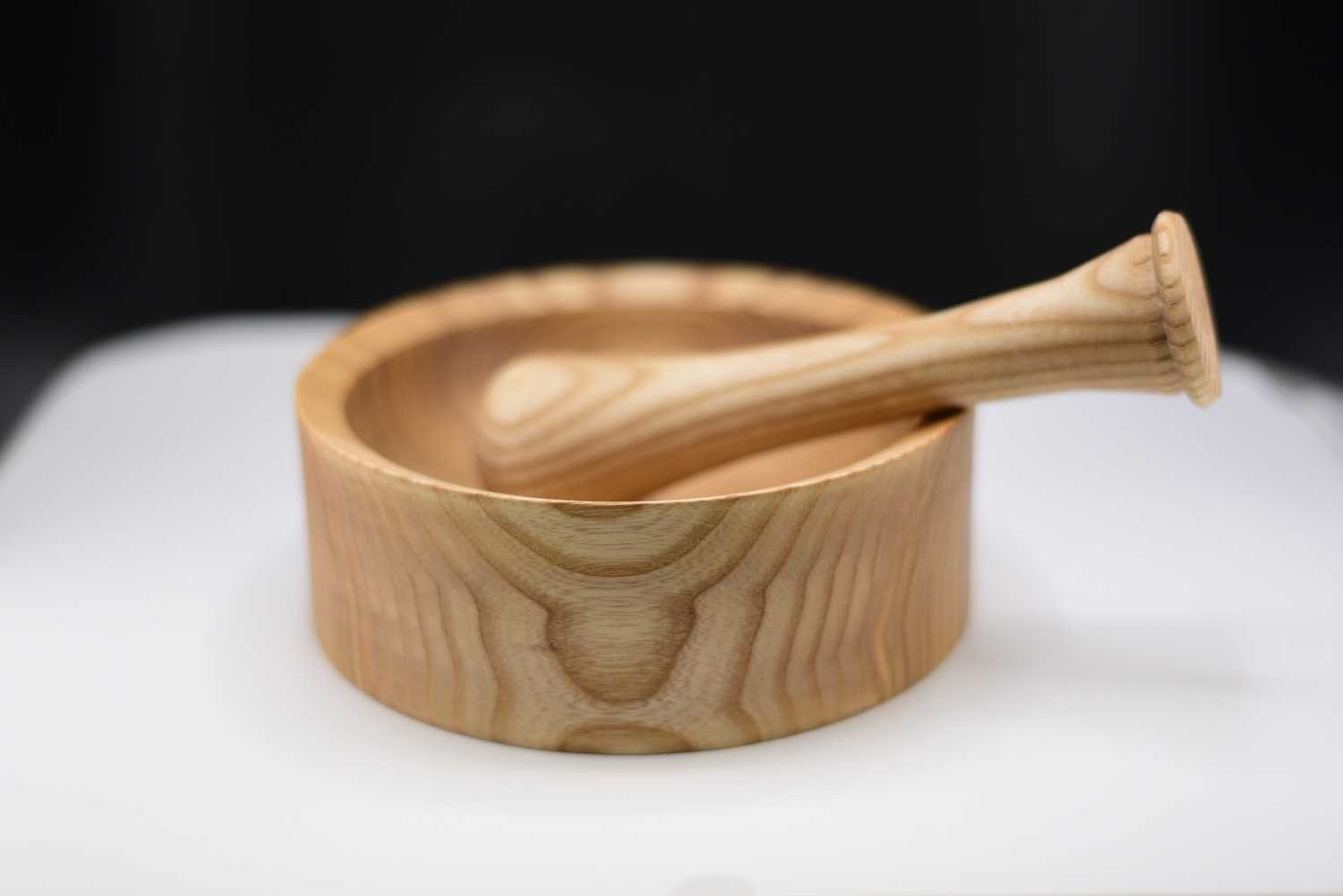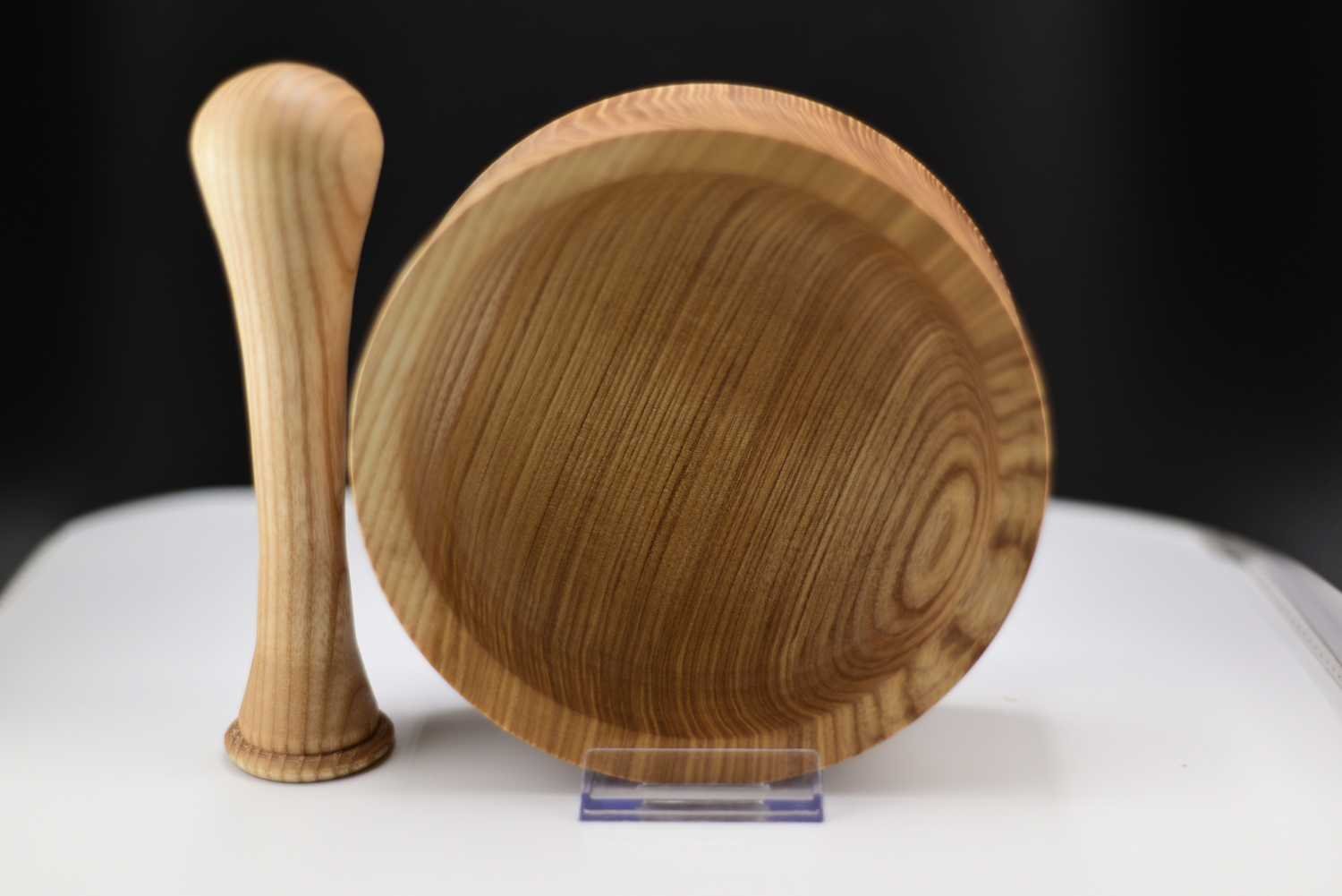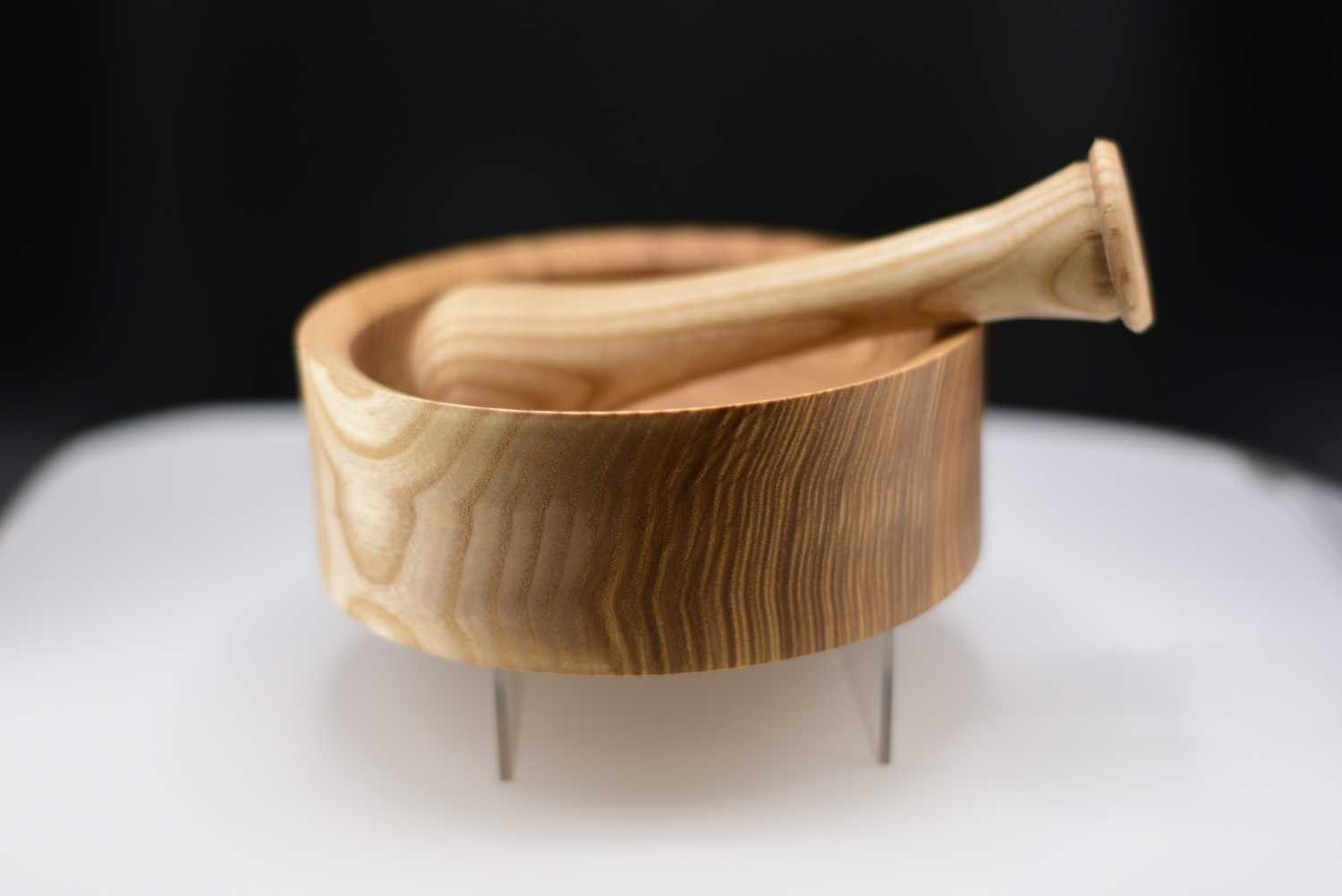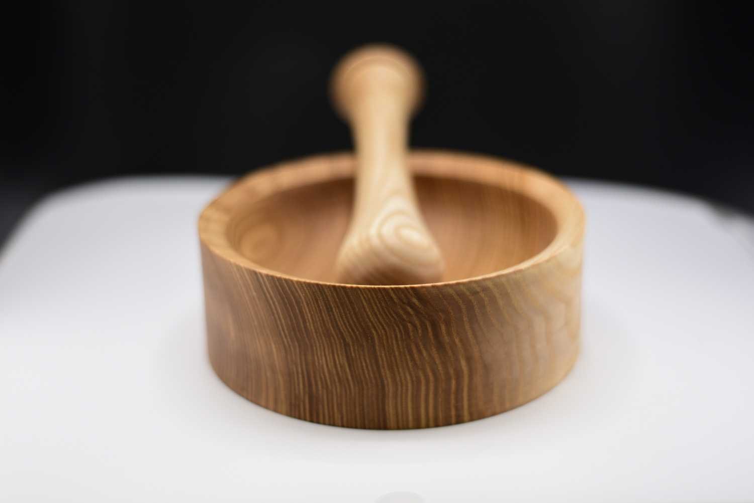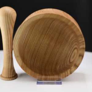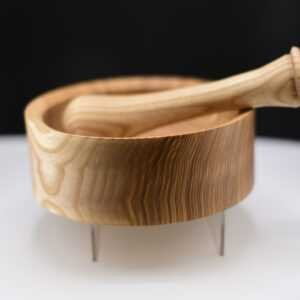 Sublimez votre cuisine avec ce mortier artisanal au design unique, réalisé à la main dans du bois de frêne olivier entièrement recyclé et protégé par une huile de pépin de raisin naturelle ; sa forme originale et sa robustesse offrent un confort et une précision exceptionnels pour broyer épices, herbes ou ail, tandis que chaque veine du bois apporte charme et caractère à votre espace culinaire ; livré avec son pilon assorti, ce duo est à la fois pratique et esthétique, un véritable objet d’artisanat durable et raffiné.