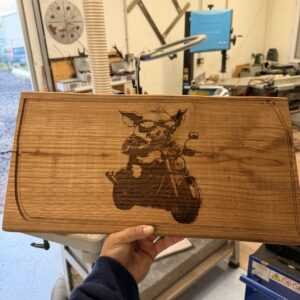 Élégante et chaleureuse, cette planche à découper en châtaignier massif de 50 cm de long environs en de 2,5 cm d’épais est façonnée à la main dans mon atelier Seewood à partir de bois recyclé provenant de scieries locales, pour une pièce durable, écoresponsable et naturellement unique ; son grain chaleureux, sa résistance exceptionnelle et sa finition huilée alimentaire en font un accessoire haut de gamme pour la cuisine comme pour le service à table, parfait pour recevoir ou offrir, et vous pouvez la rendre véritablement exclusive grâce à la gravure personnalisée de votre choix (nom, logo, date, message,illustration,photo,ou image dessins de google images), réalisée avec précision pour un cadeau unique et raffiné.