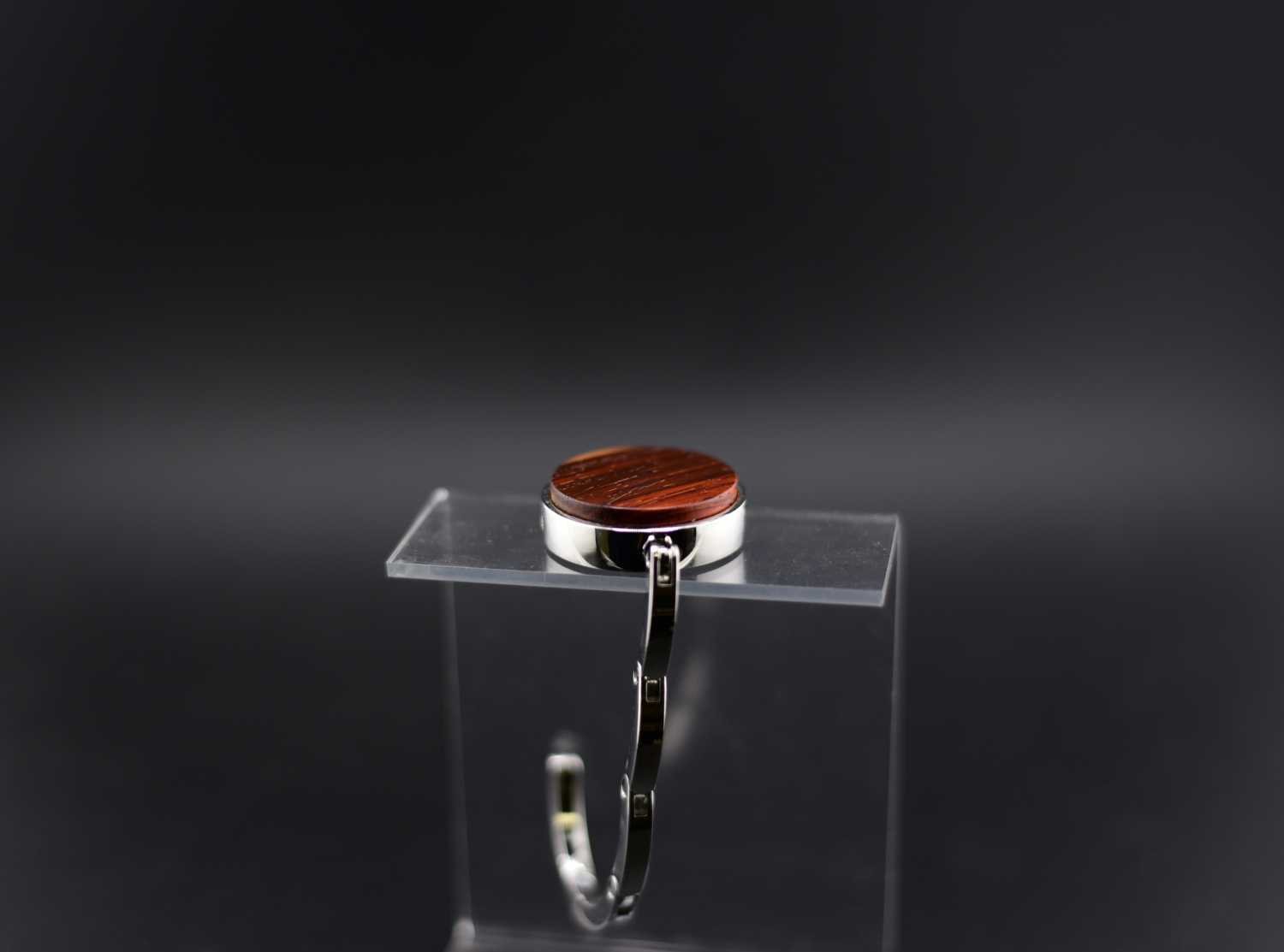 Alliez élégance et praticité avec ce porte-sac de table artisanal en bois de pernambouc, mettant en valeur la beauté naturelle et la richesse chaleureuse du bois. Solide et léger, il garde vos sacs à portée de main tout en protégeant vos surfaces. Personnalisable par gravure, il constitue un cadeau raffiné et unique pour la maison, le bureau ou un restaurant.