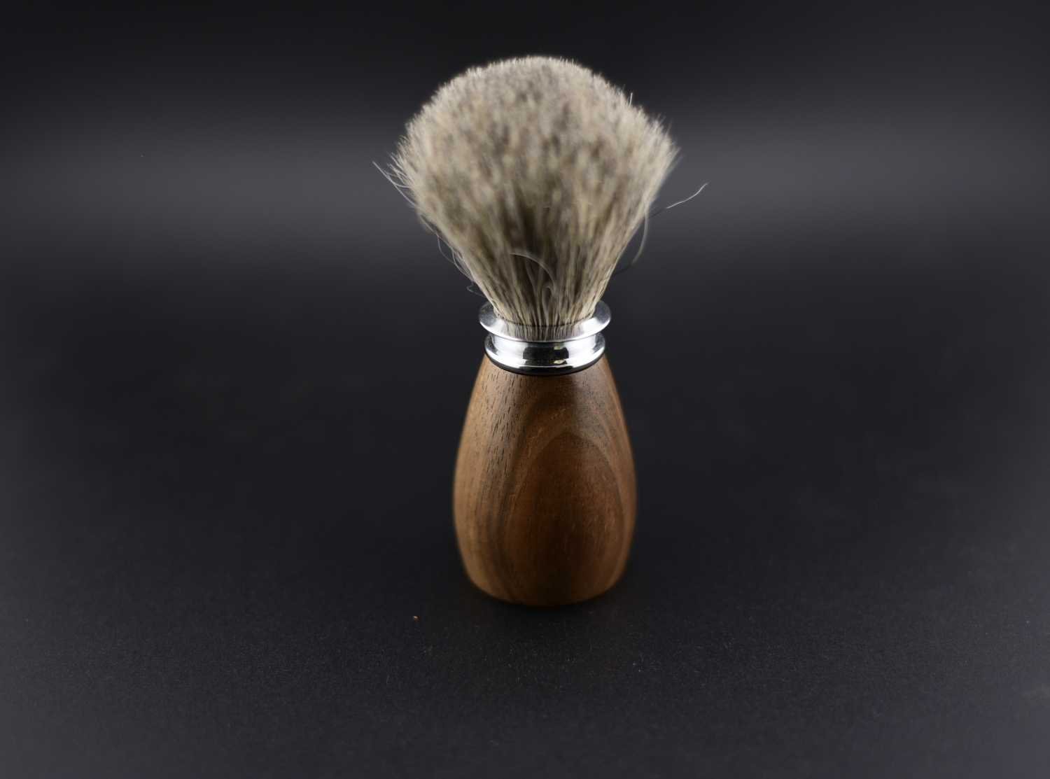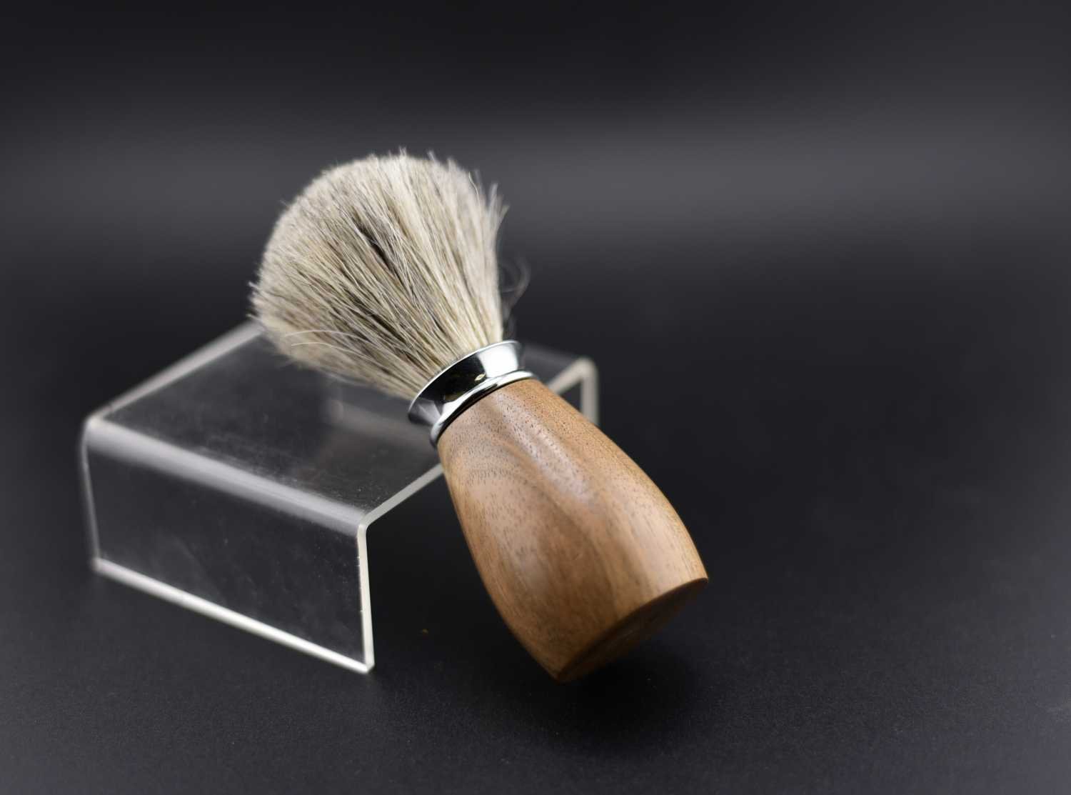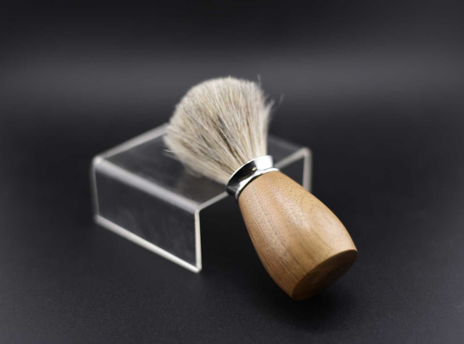 Ce blaireau de rasage est façonné à la main dans un noyer noble aux teintes chaudes et profondes, travaillé exclusivement à partir de bois recyclé pour un objet authentique et écoresponsable, dont le polissage révèle un toucher soyeux et une élégance naturelle ; son manche ergonomique offre une prise en main parfaite et accueille une touffe dense et douce pour une mousse généreuse et un rasage confortable, tandis que la gravure personnalisée permet de transformer cette pièce d’artisanat haut de gamme en un cadeau raffiné et unique, signé par l’exigence de Seewood.