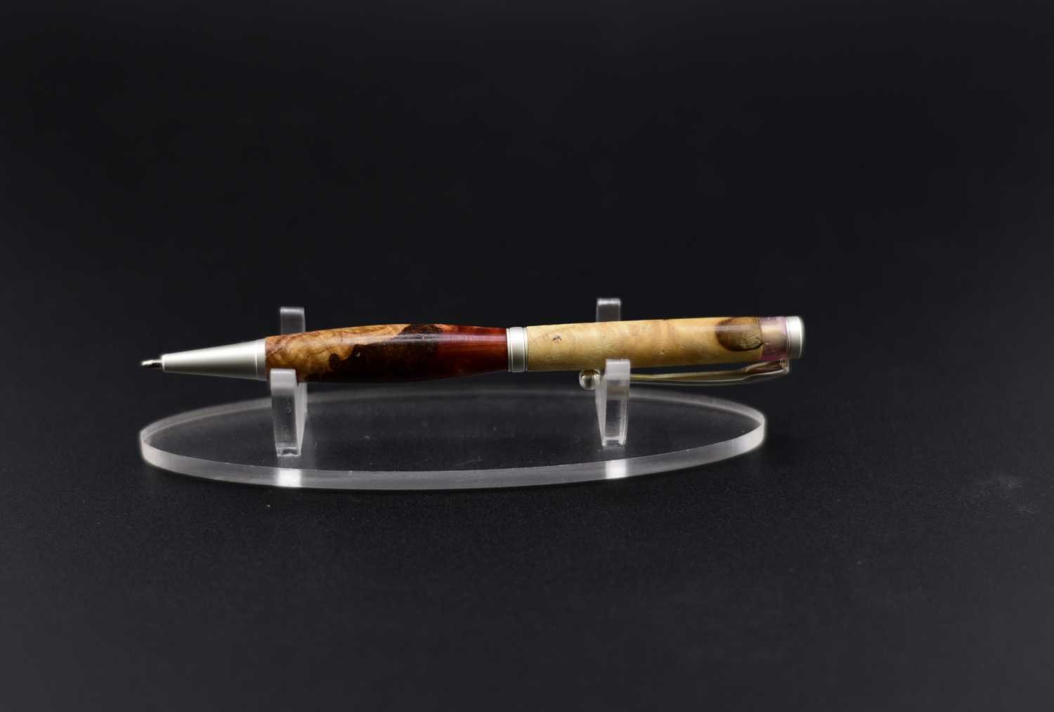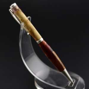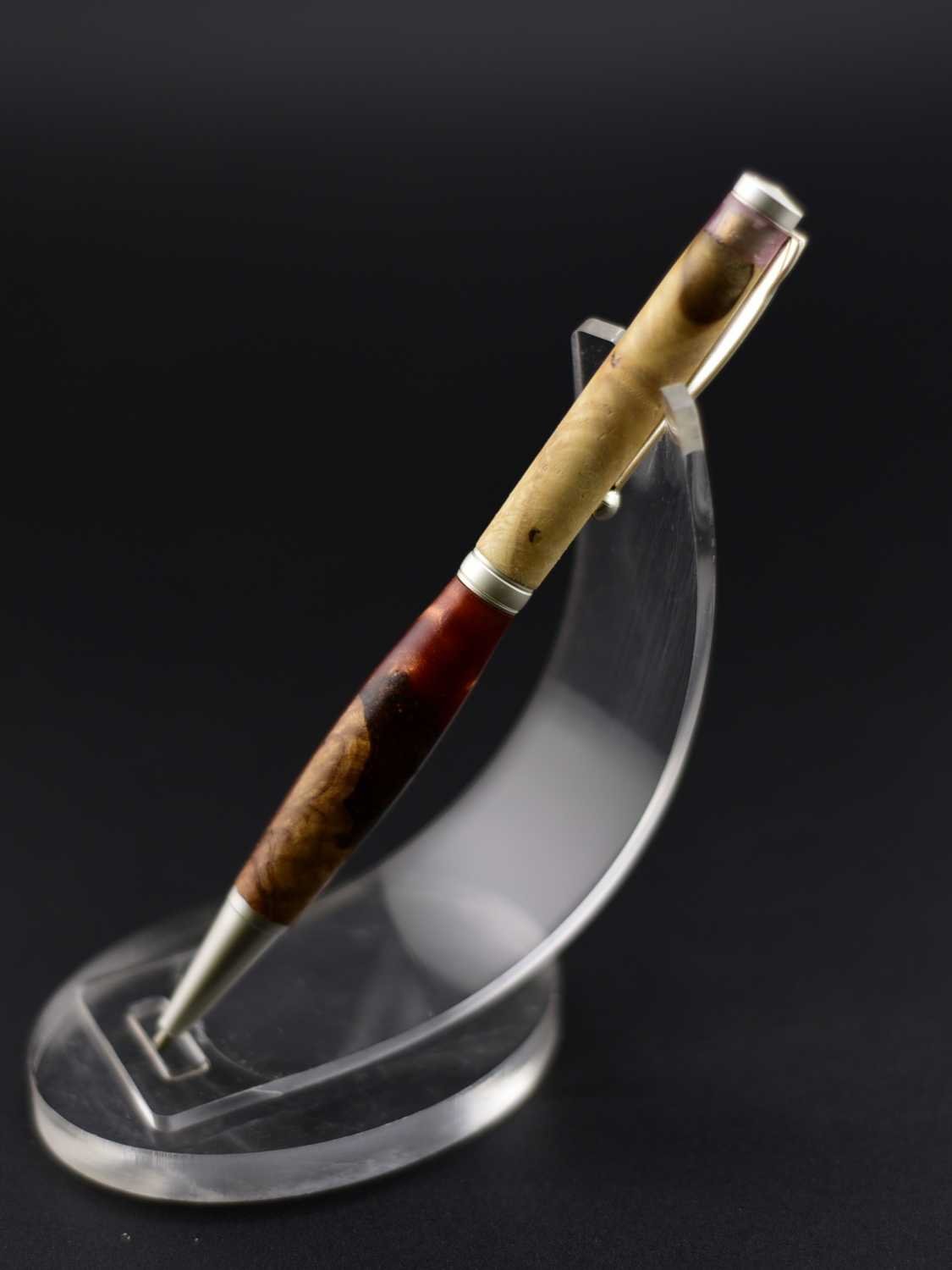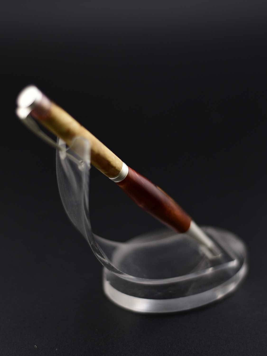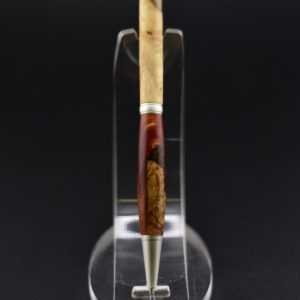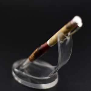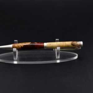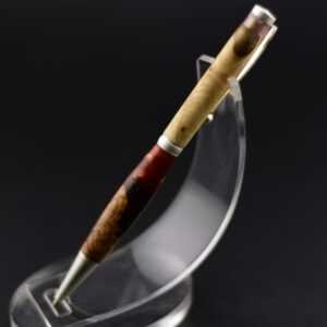 Ce stylo remarquable associe la beauté organique d’une loupe de bois soigneusement sélectionnée à une résine couleur lave aux nuances profondes et vibrantes, créant un contraste puissant et élégant, sublimé par un mécanisme en acier inoxydable effet argent brossé qui lui confère une allure moderne et raffinée ; tourné à la main dans mon atelier Seewood à partir de matériaux recyclés, il offre une finition impeccable, une prise en main parfaitement équilibrée et une écriture fluide, et peut être personnalisé gratuitement grâce à la gravure d’un prénom ou d’un message pour en faire un cadeau unique, prestigieux et chargé d’émotion.