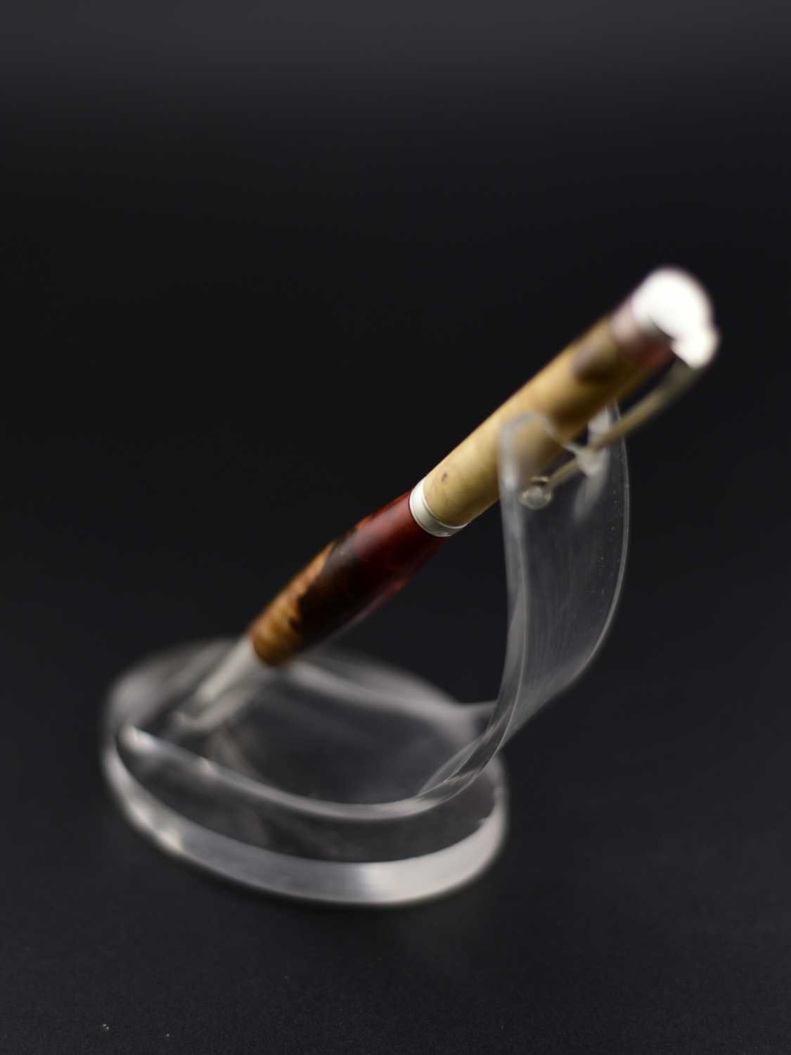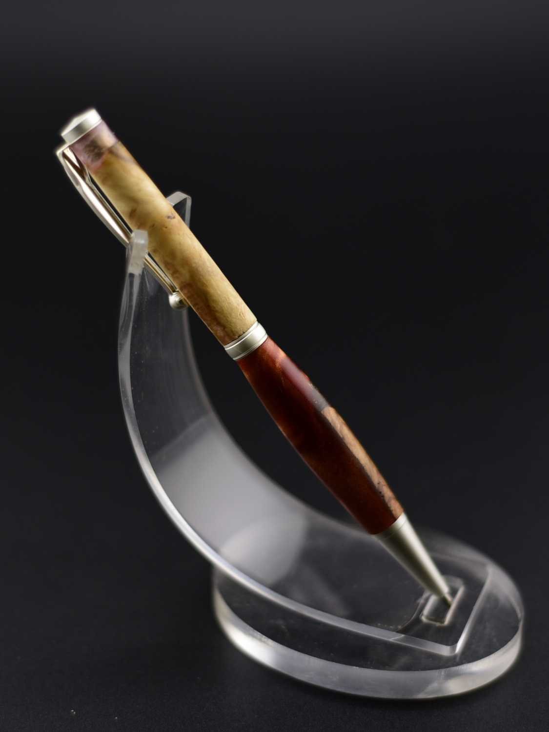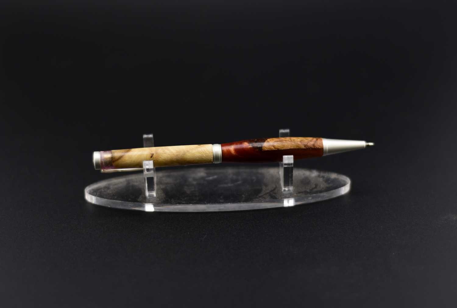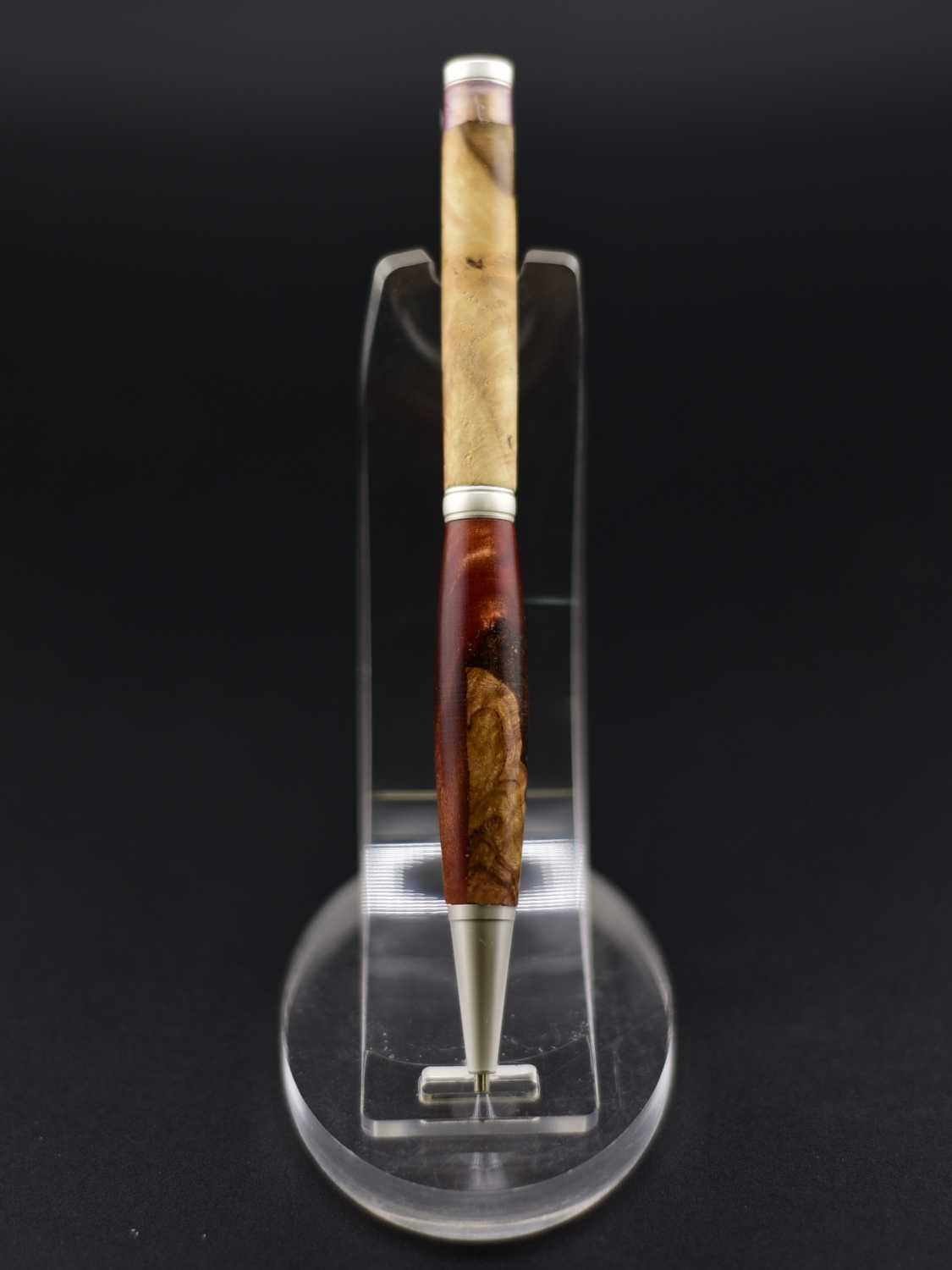 Ce stylo remarquable associe la beauté organique d’une loupe de bois soigneusement sélectionnée à une résine couleur lave aux nuances profondes et vibrantes, créant un contraste puissant et élégant, sublimé par un mécanisme en acier inoxydable effet argent brossé qui lui confère une allure moderne et raffinée ; tourné à la main dans mon atelier Seewood à partir de matériaux recyclés, il offre une finition impeccable, une prise en main parfaitement équilibrée et une écriture fluide, et peut être personnalisé gratuitement grâce à la gravure d’un prénom ou d’un message pour en faire un cadeau unique, prestigieux et chargé d’émotion.